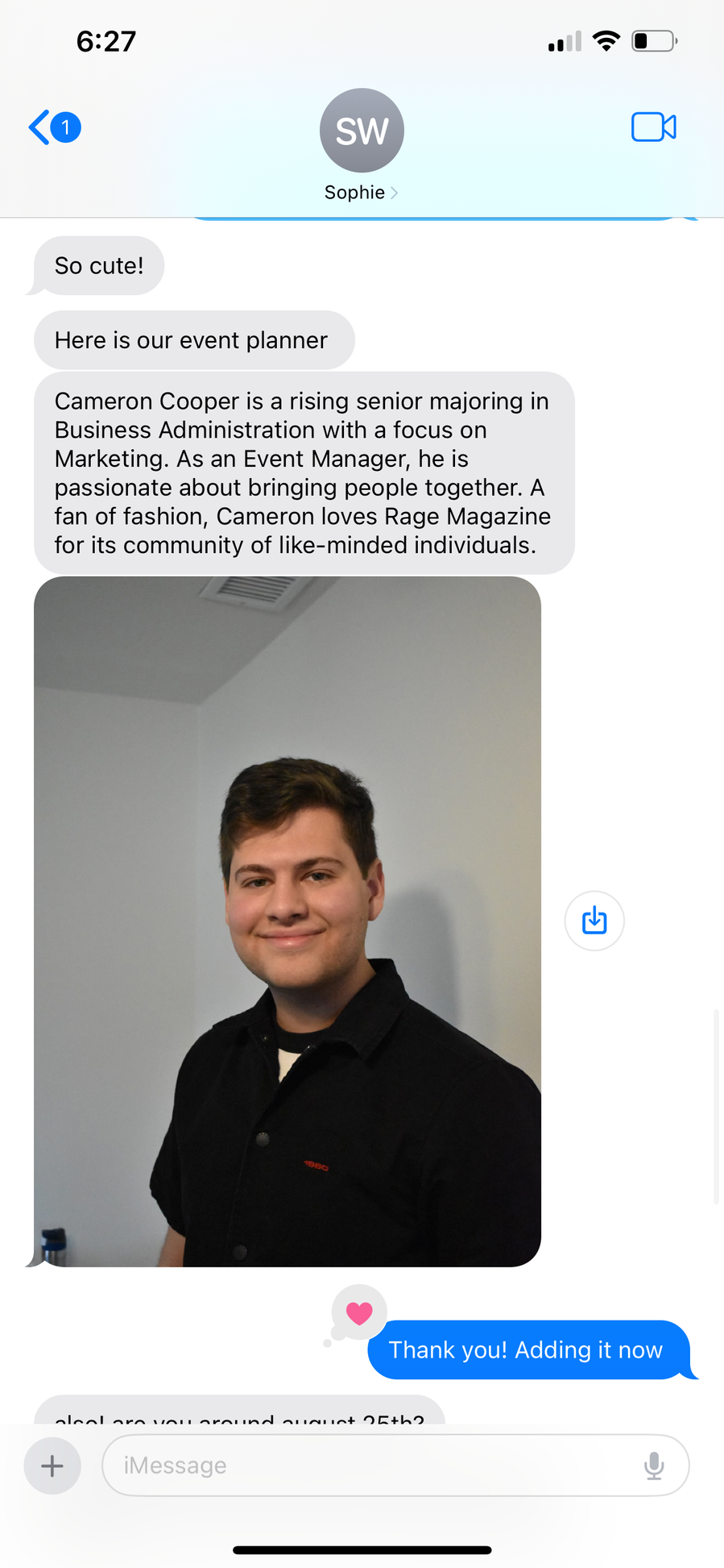 Cameron Cooper is a senior majoring in Business Administration with a focus on Marketing. As an Event Manager, he is passionate about brining people together. A fan of fashion, Cameron loves Rage Magazine for its community of like-minded individuals.